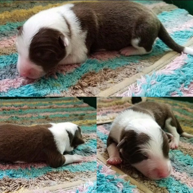 Initially, I stuck to my guns and said I didn’t want a puppy. It was relatively short lived and I ended up deciding if there was a red male in the litter, I would take him. Given red is recessive and Kip is a black and white dog, I figured chances of any red puppies were slim to none. So in July 2016, when the second puppy born was a red male so dark he looked black, I claimed him right then, figuring it was meant to be. The litter only had 4 puppies and Rugby was the only male.