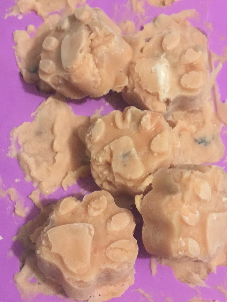 On nights when I want to add some salmon to the boys meals I just pull out 3 and add one to each bowl! Couldn’t be easier! Check back for more recipes and how to’s. These paw print silicone molds get a lot of use so there will be more options coming if salmon isn’t your thing.