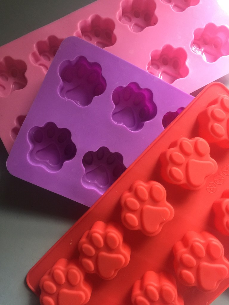 Earlier this year I was looking for a way to get more nutrients into the boys diets. A little extra something to help balance the homemade raw diet they eat. Too much of some of these things and they’d get runny poops (gross), none and they’re lacking some important parts of their diet. Plus some of this stuff is crazy expensive. I try to buy in bulk and freeze but then thawing and serving can be troublesome with only 3 dogs. Enter my favorite silicone molds. Seriously, I love these things. I started with two paw prints and two bones….and have added another 3 trays of the paw prints for more mass production and just because I love them that much! The bones are nice too but a little small for my dogs, while the paw prints are just about the perfect size, holding about .5 oz once of whatever frozen goodies I decide. They make for great meal toppers! I’ll be sharing how I make these awesome and EASY frozen paws with various recipes. There’s also a Facebook group specifically for the frozen paw treats, recipes, short cuts, etc. which is awesome!