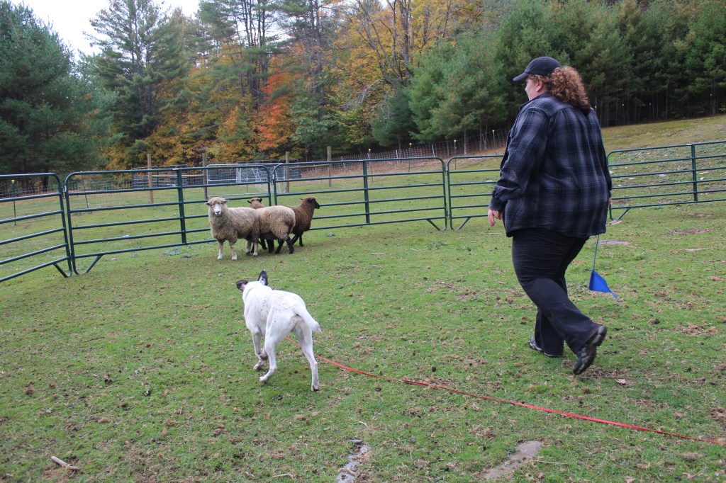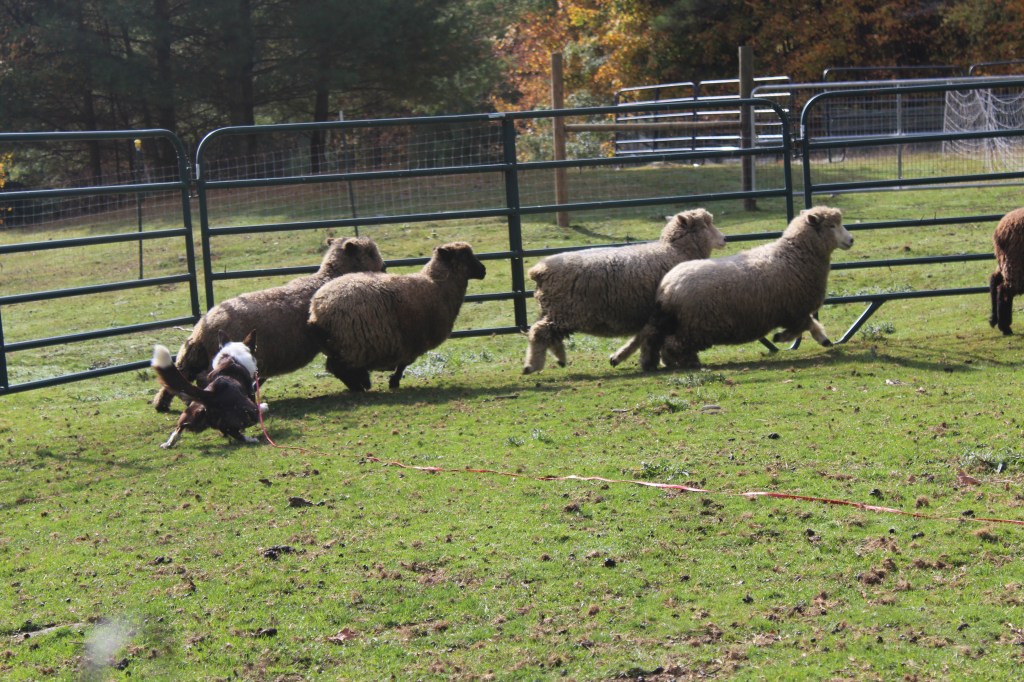 I miss Texas beyond words but the training and competing opportunities I have in NH will likely keep me here for some time to come. This weekend was a great example of that. Midweek Jess asked if I wanted to join her and Kate for a fun day of herding at my aunt’s. Obviously, I jumped at the chance (otherwise you wouldn’t be reading this). I have very limited knowledge or experience with herding but I think it’s fascinating seeing dogs do what they were bred to do. Now herding basically has its own language of commands and not only do you have to work with your dog but you also have the added challenge of livestock to manage. I was definitely uncomfortable because I had NO IDEA what or how to do things which isn’t the norm for me when it comes to dog stuff. I’m always learning but typically I have some clue.