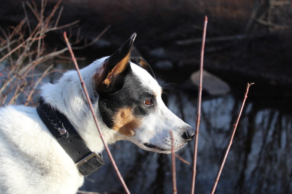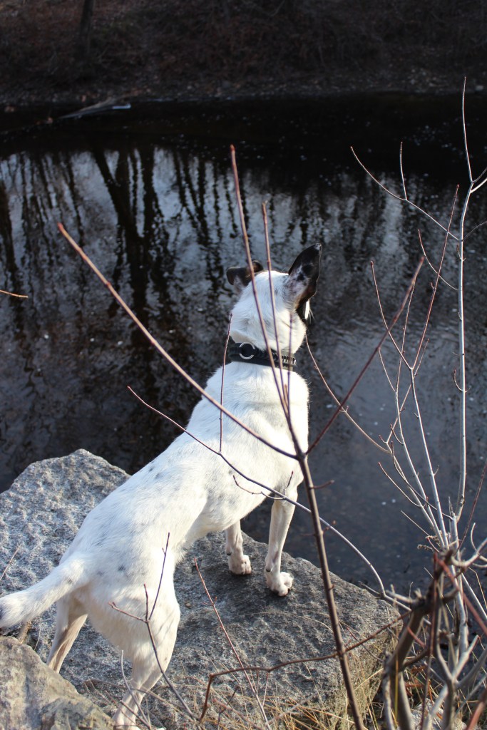 The weekend was pretty low-key with a week off from classes and no competitions in sight so Saturday Rumor and I went back. We went off in another direction to the part of the trail I’ve been to before that has a nice little water fall. I brought my camera along again and got in some more practice. Rumor is particularly difficult to photograph because his face is black and he’s twitchy which means most of my photos of him are out of focus. For this reason, Rumor has the least experience with the camera of any of my dogs. Overall he did pretty well and I was able to get a few clear-ish pictures of my boy.