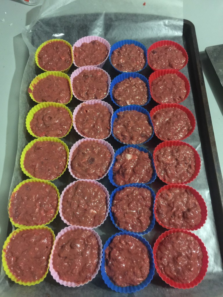 The silicone cupcakes molds are from Amazon.com and came in a pack of 54 but only about 36 could fit on the tray at a time so the remainder were left unused.